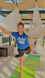 Zusätzlich bin ich im Yin- und Aerial-Yoga ausgebildet. Ziel vom Yoga im Tuch ist es, Kraft aufzubauen und Loszulassen. Ebenso wie im Raja-Yoga können hiermit sehr schön Ängste bewältigt werden. Seit 2017 lebe ich mit meinem Mann auf meiner Wunschinsel Sylt und biete hier ebenfalls Klangmassage an zur Aktivierung der Selbstheilungskräfte und Entspannung. Da mir persönlich meine Gesundheit schon immer wichtig war, bin ich seit einigen Jahren ausgebildeter Ernährungscoach und unterstütze mit diesem Wissen gerne bei einer gesunden Lebensweise.